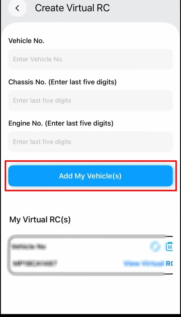 • access Virtual RC, click on Add my Vehicle(s), after this you can download your Virtual RC.