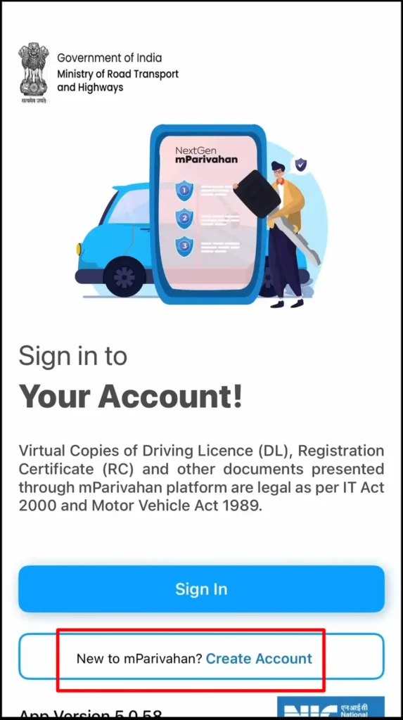 After downloading the mParivahan App, users must sign up/sign in to the mParivahan App.